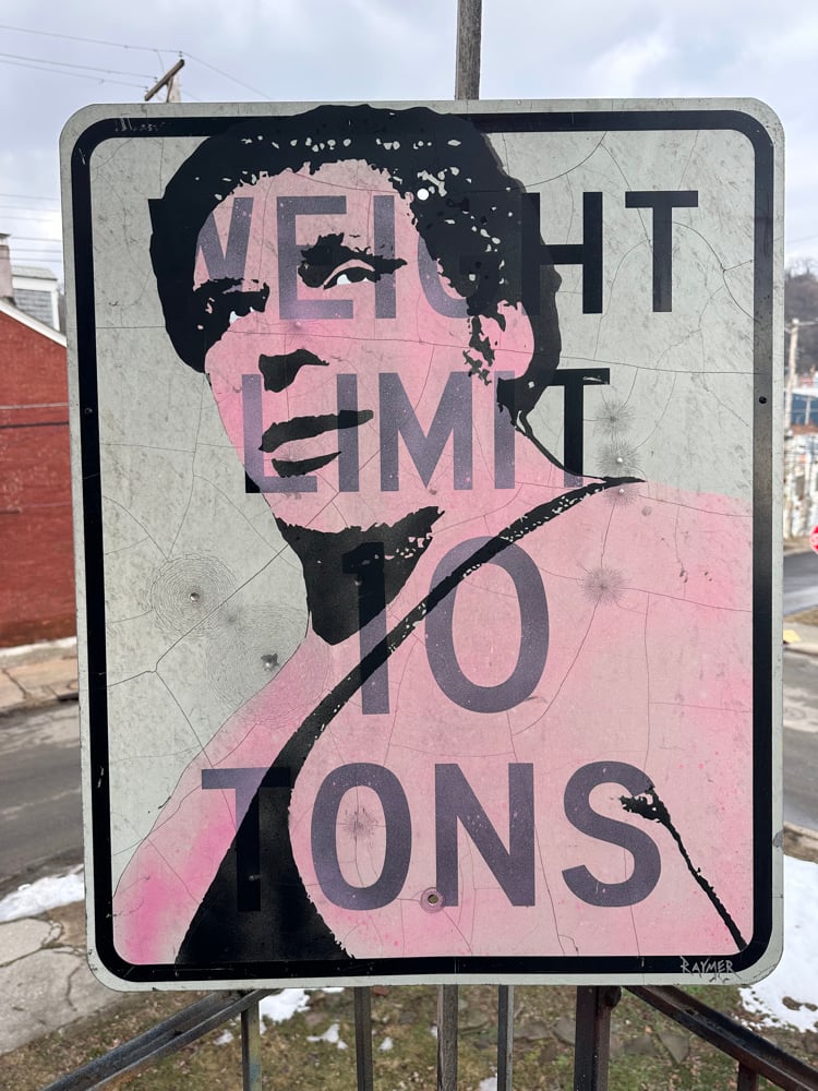 Acrylic aerosol Andre the Giant on vintage stree used sign. 24" x 30". Sign has been shot up and is a "Weight Limit 10 Tons" sign.